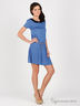 Детали: отложной контрастный ворот, застежка на две пуговицы на спинке, короткий рукав, заниженная линия талии