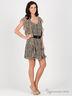 Детали: округлый вырез горловины, лямки, оборки, по боковым швам пришиты шлевки, вставлен пояс