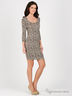 Детали: округлый вырез горловины, рукав присборен по шву, принты