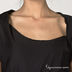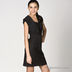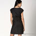Элегантное черное платье с ассиметричной горловиной. Рукава короткие с декоративными заломами на манжетах. Платье приталенное с широким ремнем.