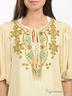 Детали: глубокий вырез, завязка на ленточку; в край рукава вставлена резинка, множество декоративных украшений на полочке и рукавах, боковые разрезы, сборка на спинке