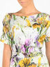 Элегантное цельнокройное платье из натурального шелка. Широкий вырез-лодочка. Короткий рукав с отворотом. Два боковых втачных кармана. Пояс-лента на шлевках. Изделие декорировано стразами и крупными пайетками. Застежка - потайная молния, расположена на спинке изделия.