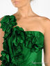В элегантном платье насыщенного зеленого цвета Вы, как лесная нимфа, привлечете восхищенные взгляды окружающих. Крой "на одной плечо". Приталенный силуэт. Застежка - боковая молния, проходит по боковому шву. Изделие декорировано тканевыми цветами, расшитыми пайетками.
