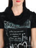Детали: отложной воротник, короткие рукава, на полочке оригинальный принт со стразами, ворот, рукава и манжеты - эластичная переливающаяся ткань толстой вязки