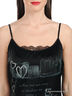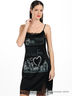 Детали: на тонких регулируемых бретельках, верхняя и нижняя часть украшены ажурным кружевом, на полочке оригинальный принт со стразами