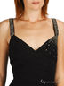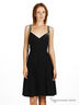 Платье расклешенного кроя из тонкого хлопка. Тонкие бретельки декорированы стразами. Отрезной верх с запахом украшен складкой и яркими стразами. Сзади платье присборено многорядной резинкой. На линии талии ленты, завязывающиеся в бант. Широкая юбка.