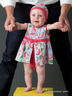 Необычное боди, выполненное в стиле платья. Округлый вырез горловины, впереди разрез. Боди выполнено из однотонной ткани, само платье из ткани с рисунком, украшено поясом с бантом. Внизу предусмотрена застежка на кнопки для дополнительного удобства.