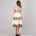 Детали: короткие рукава, вырез округлый, завышенная талия подчеркнута втачным поясом, застежка на молнию, изделие украшено многослойными воланами.
