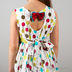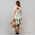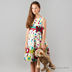 Детали: без рукавов, вырез округлый, завышенная талия подчеркнута втачным поясом, вырез на спинке украшен бантом, изделие декорировано ярким принтом.