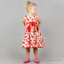 Детали: без рукавов, вырез округлый, завышенная талия подчеркнута втачным поясом, спинка декорирована бантом, яркий принт.