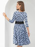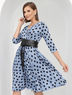Беспроигрышный вариант для встреч и свиданий, работы и похода в гости. Максимально женственное платье из трикотажа в оттенке «Джинс» с крупным горохом. Попробуйте с эффектным колье – многоярусное или «дутая» цепь.
