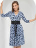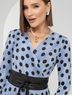 Беспроигрышный вариант для встреч и свиданий, работы и похода в гости. Максимально женственное платье из трикотажа в оттенке «Джинс» с крупным горохом. Попробуйте с эффектным колье – многоярусное или «дутая» цепь.