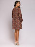 Платье бордовое с принтом длины мини с объемными рукавами