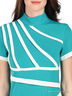 Детали: застегивается на молнию сзади; ворот-стойка; короткий рукав; декорировано контрастными нашивками