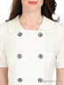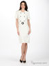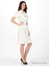 Детали: отложной ворот; имитация двубортной застежки; короткий рукав; в шлевки продет пояс с контрастной пряжкой