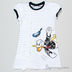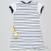 Детали: круглый вырез; короткий рукав; на спинке принт - полоска; на полочке аппликация с пайетками и декоративная рюша