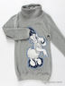 Велюровое платье прямого силуэта с трикотажным воротом гольф. Длинный рукав и низ изделия посажены на трикотажные манжеты. Полочка украшена нашивкой, стразами и пайетками.