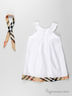 Платье расклешенного силуэта из тонкой ткани с фактурным жаккардовым узором. Круглый вырез горловины. Застежка на спинке на молнию. На полочке заложены крупные встречные складки. Подол дополнен контрастной вставкой.