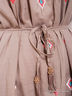 Легкое платье модного дизайна. Модель без рукавов выполнена из ткани актуального цвета с красивой отделкой пройм и стильной разноцветной вышивкой. Эта вещь станет прекрасной составляющей Вашего повседневного гардероба.