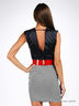 Эффектное платье из эластичного материала. Отрезной лиф выполнен из темно-синего атласа, декорирован кружевом. Короткая юбка выгодно подчеркнет фигуру. Застегивается на молнию в боковом шве. В комплект входит широкий лакированный пояс на кнопках с большим бантом.