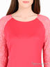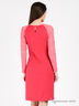 Элегантное платье из джерси приталенного силуэта с округлым вырезом горловины и с застежкой на пуговицу на спине. Длинный прямой рукав-реглан выполнен из кружевной гипюровой ткани.