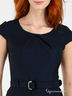 Детали: круглый вырез; застегивается на молнию сзади; в шлевки продет пояс; на полочке встречная складка