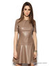 Модная новинка от бренда CARDO - платье "VIV`EN" beige skin из итальянского кожзама суперстильного бежевого цвета. Изделие украшено отделочными строчками. Модель приятного приталенного силуэта с коротким рукавом и стильной слегка расклешенной отрезной юбкой. Застегивается на аккуратную молнию, расположенную по центру спинки. Мини-длина делают эту модель молодежной, смелой и игривой.
