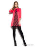 "AMBER" - великолепное платье в модном коралловом цвете. Яркая новинка сезона 2015 выполнена из высококачественного трикотажа в комбинации с красивым и элегантным кружевом. Стильная модель с отложным воротничком и рукавом 3/4 имеет довольно свободный полуприлегающий силуэт, который в сочетании с интересной обработкой низа платья и рукавов("модная волна") создает молодежный и игривый образ. Романтичности изделию добавляет изысканная вставка из черного кружева. Платье застегивается на потайную молнию по спинке.