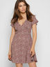 Изящное мини-платье на каждый день. V-образный вырез, короткий рукав, завышенная талия и расклешенная юбка. По ткани цветочный рисунок. Сбоку потайная застежка на молнию.