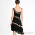 Приталенное нарядное платье, расклешенное к низу за счет трех воланов, выкроенных по косой.. Пройма не глубокая, умеренно широкая. Застежка на молнию в боковом шве. Декорировано аппликацией в виде цветов. Аппликация идет немного по косой, что делает силуэт более стройным. Расшито бисером-рубка, бусинами. Изысканный вечерний наряд!