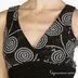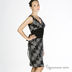 Платье вечернее Каприз. Силуэт приталенный, прямой классический, на притачной подкладке. Длина до середины колена. Вставки из паралона. V образный вырез с небольшим запахом. Пройма не глубокая, умеренно широкая. Застежка молния в боковом шве. Талия подчеркнута широким поясом с воздушной драпировкой. Дополнительно из боковых швов идут две шифоновые ленты, завязывающиеся в бант на спине. Материал низа –тонкий трикотаж. Материал верха – тонкая сетка расшитая пайетками и бисером в виде геометрического рисунка, в классических, черно-белых цветах.