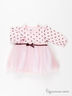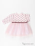 Воздушное платье для девочки. Округлый вырез горловины, длинные рукава. Модель украшена сетчатой юбкой и атласной ленточкой. Прекрасный вариант для маленькой принцессы!
