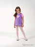 Слегка расклешенная модель с коротким рукавом украшена рюшами и аппликацией.