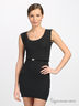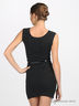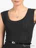 Трикотажное платье без рукавов с глубоким круглым вырезом. Декорировано функциональным поясом. Трикотажная ткань в рубчик.
