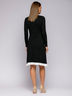 Платье черное длины миди с длинными рукавами и контрастной полосой по подолу