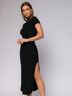 Платье черное длины миди с коротким рукавом и воротником стойка
