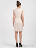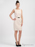 Платье без рукавов с округлым вырезом горловины. Изделие свободного покроя, что позволяет скрыть недостатки фигуры. Спереди модель украшена декоративным элементом.