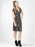 Стильное платье приталенного силуэта с V-образным вырезом горловины с запахом и коротким рукавом выполнено из вискозного трикотажа. Отрезной лиф подчеркнут имитацией пояса. Эластичный подклад. Изделие украшено рисунками. Будьте в центре внимания.