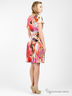 Яркое платье с V-образным вырезом горловины и коротким рукавом выполнено из шелковистого эластичного вискозного трикотажа. Отрезной пояс, имитация застежки на пуговицы на полочке, скрытая застежка на молнию в левом боковом шве. Юбка со складками. Отличный вариант для создания стильного образа.