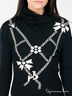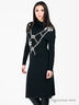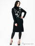 Прилегающий, расклешенный к низу силуэт. Длинный прямой, зауженный рукав с приспущенным кроем плеча. Высокий широкий воротник гольф. На полочке принт в виде бантиков, расшитый стразами.