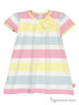 Повседневное платье свободного силуэта. Округлый вырез горловины. Короткие рукава. На плечике застежка на кнопки. Оригинальный узор. Полочка украшена бантом.