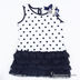 Платье в горошек с оборками из тюли, плечо декорировано оригинальной брошью.