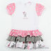 Белое платье с серо-розовыми воланами и маленькой аппликацией "Уточка".
