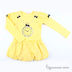 Платье для девочки желтого цвета с длинным рукавом. Пояс дополнен кулиской. На полочке декоративный элемент в виде оригинальных часиков.
