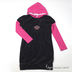 Удлиненная толстовка-платье прямого силуэта с капюшоном. Имитация двойки. Два передних кармана. Декоративные складки, стразы.