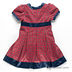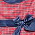 Детали: округлый вырез горловины, короткий рукав-фонарик, скрытая застежка на молнию на спинке, встречные складки, завышенная линия талии обозначена пришитым атласным поясом с бантом; вырез горловины, манжеты и низ изделия декорированы атласными вставками