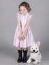 Нежный, воздушный сарафан расклешенного силуэта. Отложной круглый воротник, с рукавами-крылышками, украшен оборками на лифе и по линии талии. Застегивается спереди на пуговицы.