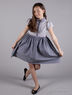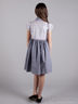 Изящное и практичное расклешенное платье. В рукава-фонарики вставлен подклад и резинка по низу, благодаря которым создается объем. Лиф и рукава выполнены из тонкой и нежной хлопковой ткани, воротник, планка и нижняя часть из более плотной. Застегивается спереди на пуговицы.