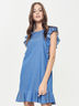 Джинсовое платье А-силуэта с воланами.