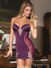 Роскошное обтягивающее платье цвета дикой сливы с отделкой кружевами и лентами цвета шампань. Спереди и сзади вставка из плотного материала, который формирует идеальный силуэт. Лиф пуш-ап приподнимет грудь, зрительно увелив грудь. Платье на тонких бретельках регулируемой длины, в комплекте пажи для чулок. Трусики в комплект не входят.